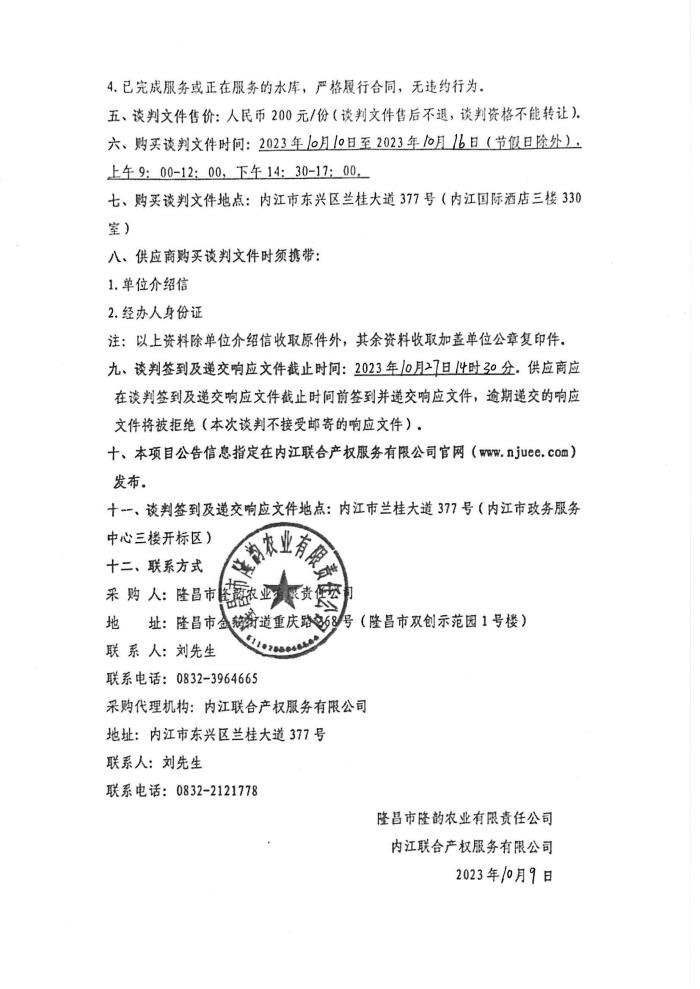 隆昌市隆韻農(nóng)業(yè)有限責(zé)任公司縣級水庫委托運營服務(wù)項目(第二次)采購公告