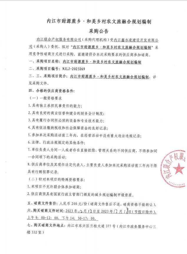 內(nèi)江市甜源蔗鄉(xiāng)·和美鄉(xiāng)村農(nóng)文旅融合規(guī)劃編制采購(gòu)公告