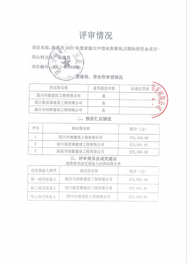 隆昌市2021年度省級大中型水庫移民后期扶持資金項(xiàng)目-同心村文化廣場建設(shè)結(jié)果公告